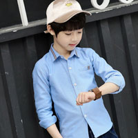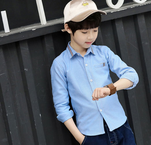 เสื้อเชิ้ตเด็กผู้ชาย สีฟ้าแขนยาว