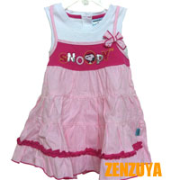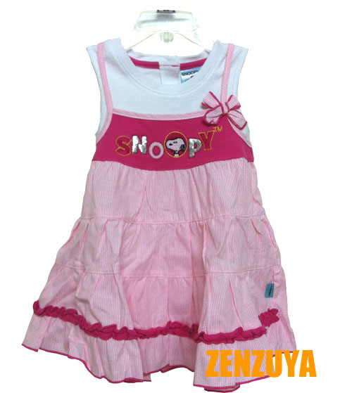 ชุดเดรสเด็กผู้หญิง เสื้อสีขาว เอี๊ยมหลอกสีชมพู มีโบว์ กระดุมหลัง กระโปรงระบาย หวานๆค่ะ