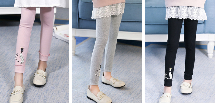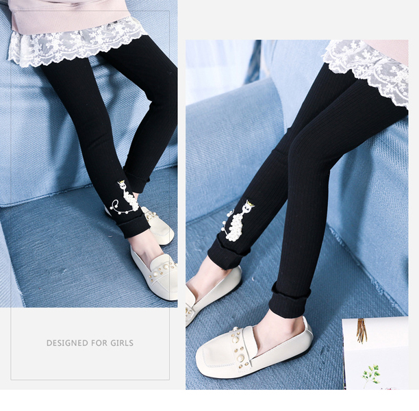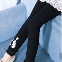 เลกกิ้งเด็กผู้หญิง สีดำ ลายแมว ประดับมุก