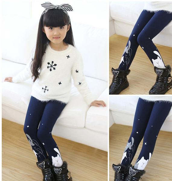 เลกกิ้งเด็กผู้หญิง สีน้ำเงิน ลายแมว