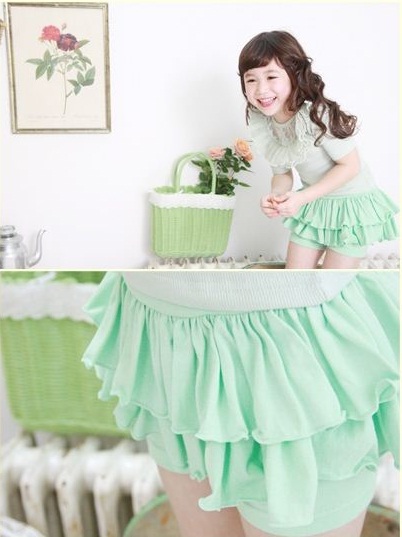 กระโปรงกางเกงเด็กผู้หญิง ระบายชั้นสีเขียว