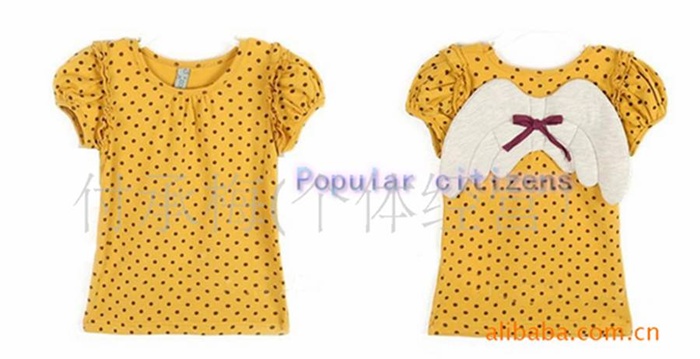 เสื้อเด็กผู้หญิงปีกนางฟ้า แขนสั้น ลายจุดสีเหลือง ( หมดค่ะ )
