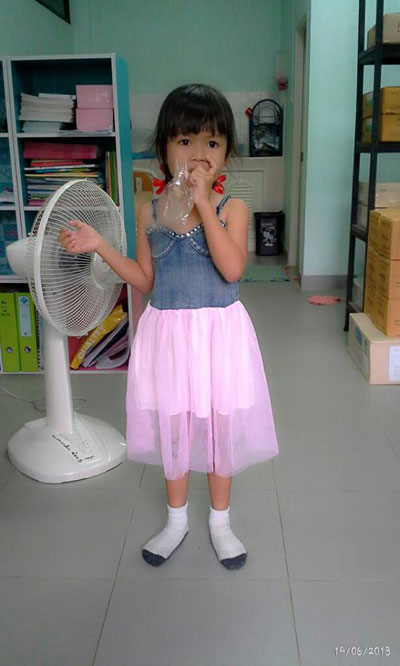 ชุดเดรสเด็กผู้หญิง สีชมพู แขนตุ๊กตา กระโปรงพองฟู
