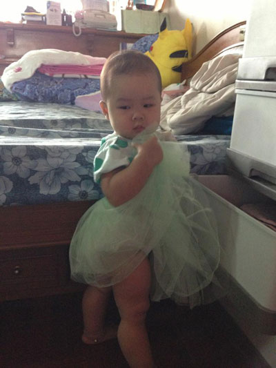 ชุดเดรสเด็กผู้หญิง เสื้อขาว กระโปรงสีเขียวพองฟู